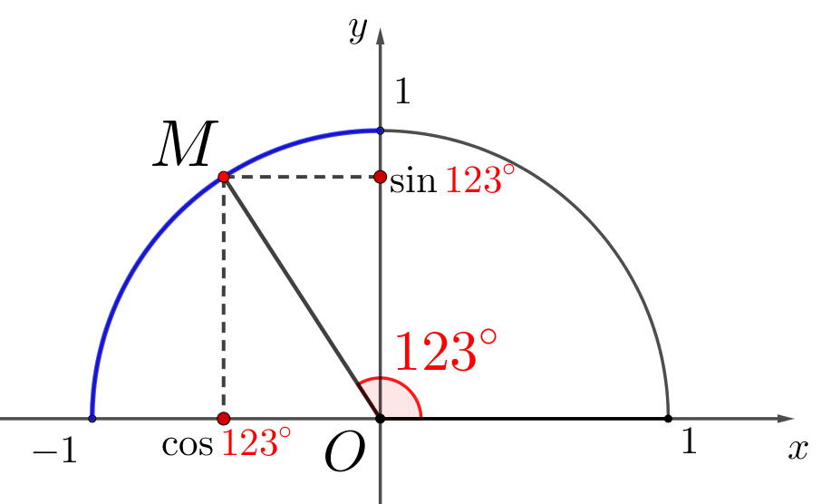 \(\displaystyle \cos123^{\circ}<0\) и \(\displaystyle \sin123^{\circ}>0\small.\)