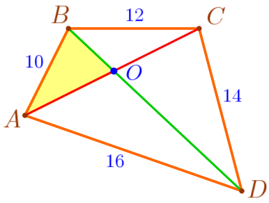 Диагонали разбили четырёхугольник \(\displaystyle ABCD\) на четыре треугольника: