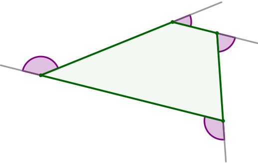 Сумма внешних углов выпуклого \(\displaystyle n\)–угольника равна \(\displaystyle 360^{\circ}{\small.}\)