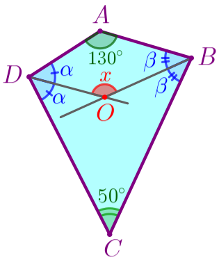 Найдите угол \(\displaystyle BOD{\small,}\) если \(\displaystyle \angle A=130^{\circ}{\small,}\) \(\displaystyle \angle C=50^{\circ}{\small.}\)