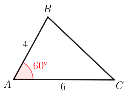 Найдите площадь треугольника \(\displaystyle ABC\small,\) если \(\displaystyle AB=4\small,\) \(\displaystyle AC=6\) и \(\displaystyle \angle BAC=60^{\circ}\small.\)