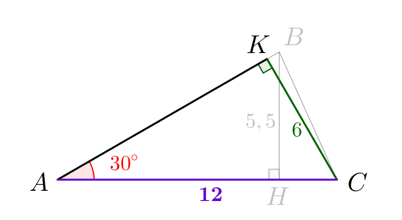 \(\displaystyle AC=\frac{CK}{\sin 30^{\circ}}=12\small.\)