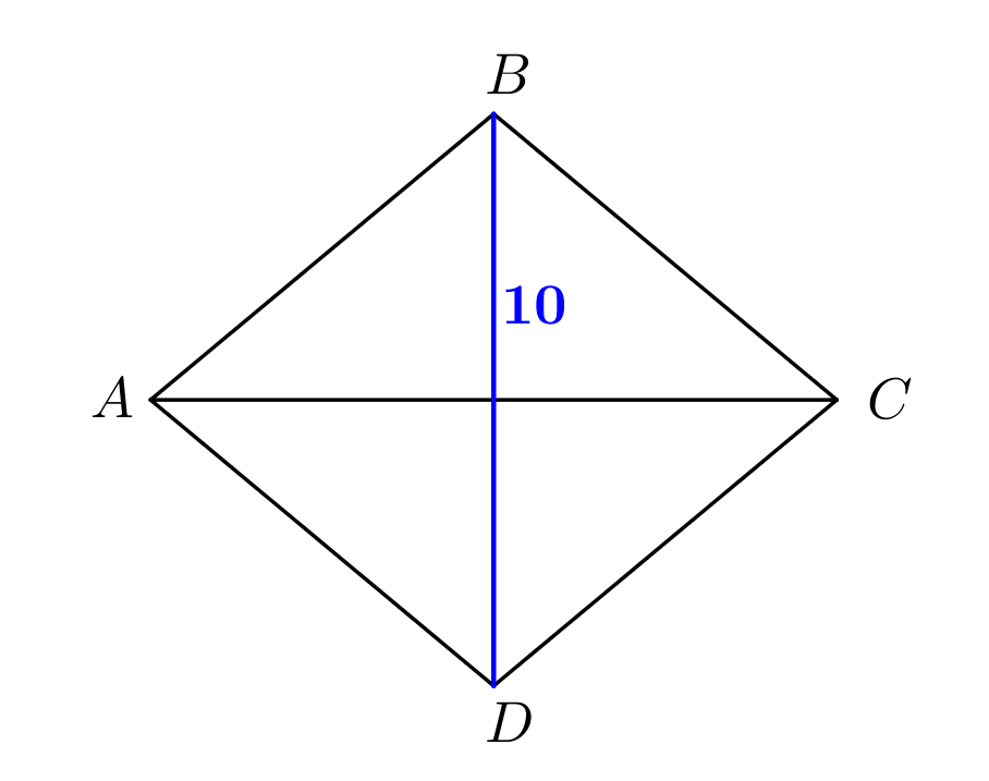 Одна из диагоналей ромба равна \(\displaystyle 10\small.\) Найдите его стороны, если площадь этого ромба равна \(\displaystyle 60\small.\)
