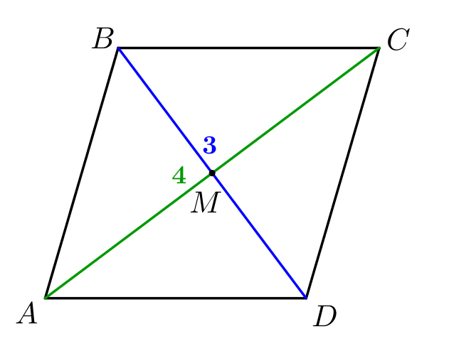 Диагонали параллелограмма равны \(\displaystyle 3\) и \(\displaystyle 4\small,\) а его площадь равна \(\displaystyle 6\small.\) Найдите стороны параллелограмма.