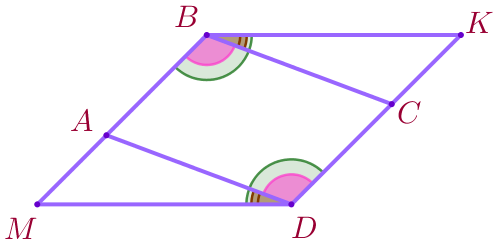 \(\displaystyle MB\parallel KD{\small,}\) \(\displaystyle BK\parallel MD{\small;}\)