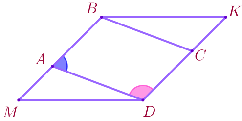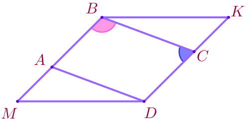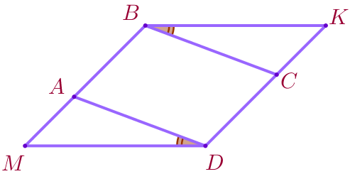 На сторонах \(\displaystyle MB\) и \(\displaystyle KD\) параллелограмма \(\displaystyle MBKD\) отмечены соответственно точки \(\displaystyle A\) и \(\displaystyle C\) так, что \(\displaystyle \angle ADM= \angle CBK{\small.}\)