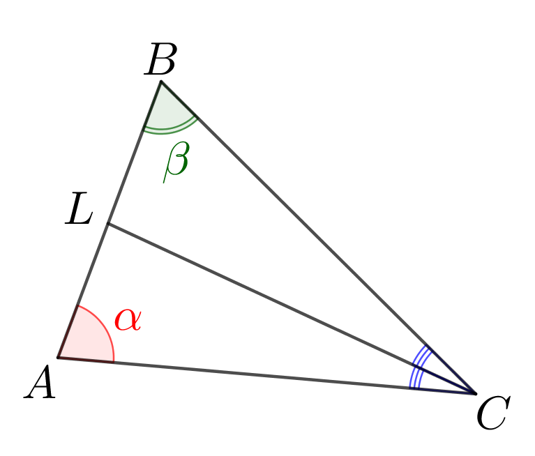 Выразите биссектрису \(\displaystyle CL\) через \(\displaystyle \alpha,\,\beta\) и \(\displaystyle a{\small:}\)