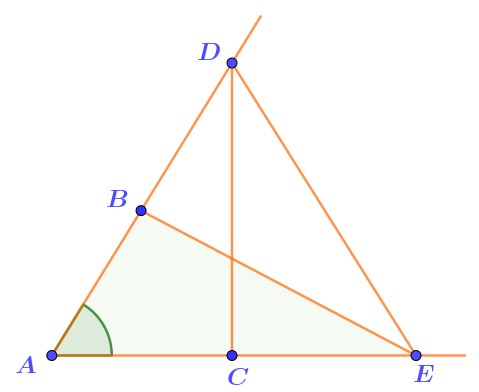 На сторонах угла \(\displaystyle DAE\) отмечены точки \(\displaystyle B\) и \(\displaystyle C{\small .}\)