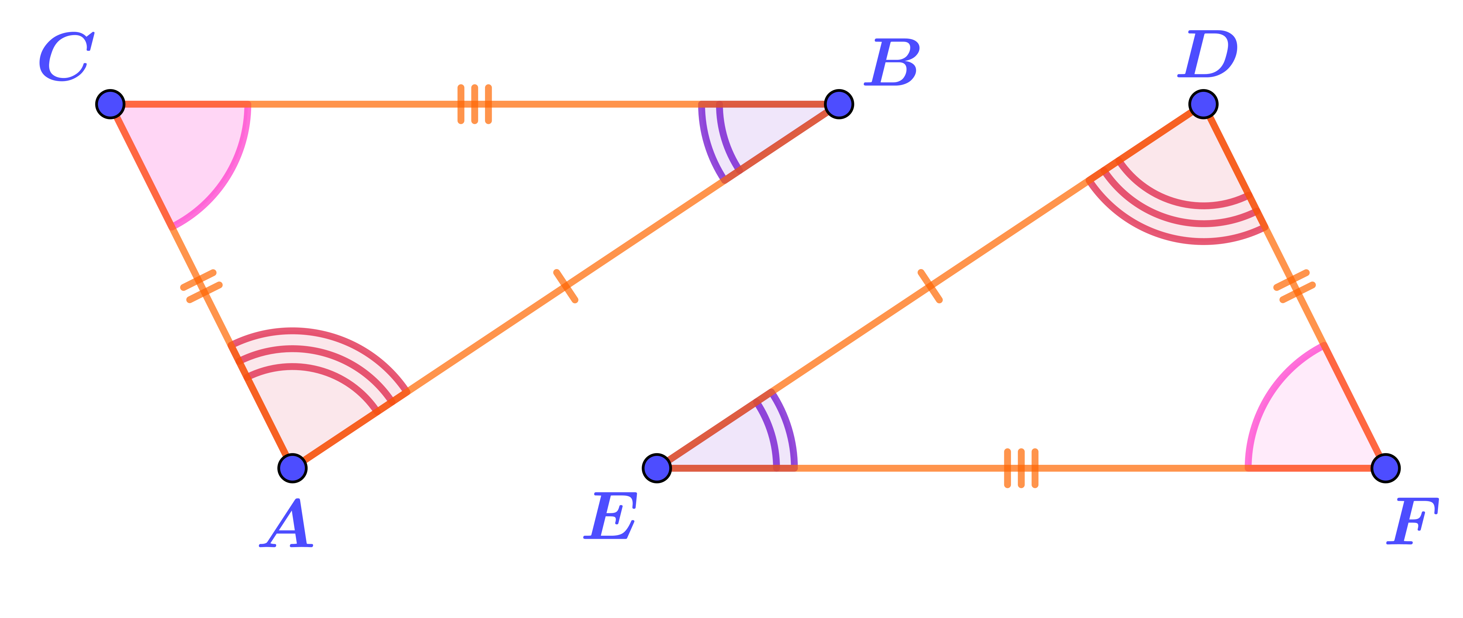 | \(\displaystyle AC= DF\) | \(\displaystyle {\triangle}ABC={\triangle}DEF\) | ||