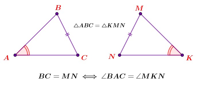 \(\displaystyle \left\{\begin{array}{ll}AB=SP\\AC=SQ\\\angle BAC=\angle PSQ\end{array}{\LARGE\Rightarrow}\quad\begin{array}{c} \\{\bf\triangle}ABC={\bf\triangle}SPQ\\\text{ \footnotesize\it(по первому признаку)}\end{array}\right.\)
