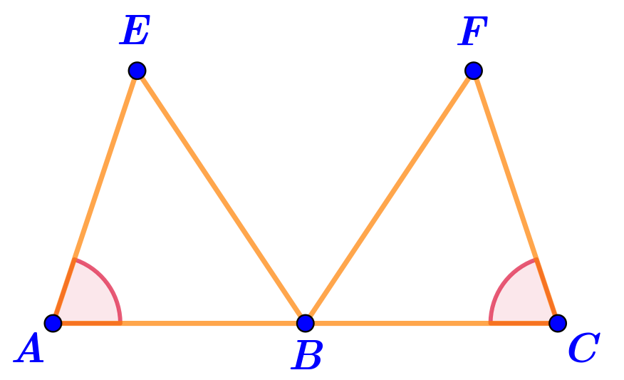 Точки \(\displaystyle E\) и \(\displaystyle F\) соединены с концами отрезка \(\displaystyle AC\) и с точкой \(\displaystyle B{\small ,}\) принадлежащей ему.