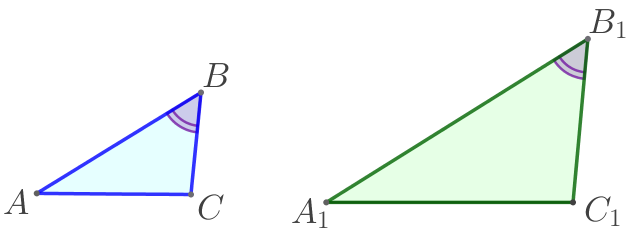 \(\displaystyle \triangle ABC \sim \triangle A_1B_1C_1\) по двум сторонам и углу между ними (по второму признаку подобия)