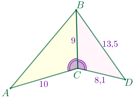 \(\displaystyle \frac{BC}{AC}=\frac{CD}{BC}=0{,}9{\small.}\)