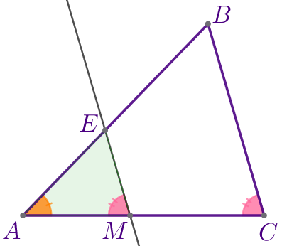 ![]() | Рассмотрим треугольники \(\displaystyle AEM\) и \(\displaystyle ABC {\small:} \\ \)