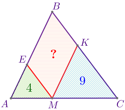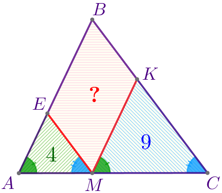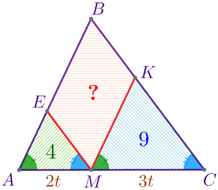 \(\displaystyle S_{\triangle ABC}=S_{MEBK}+S_{\triangle AEM}+S_{\triangle MKC}{\small.}\)