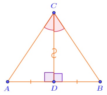 Для треугольников \(\displaystyle ACD\) и \(\displaystyle BCD\) выполняются условия первого признака равенства треугольников: