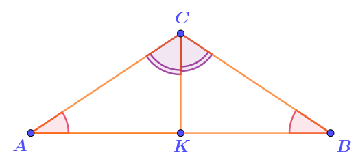 В треугольнике \(\displaystyle ABC\) с двумя равными углами провели биссектрису \(\displaystyle CK{\small .}\)