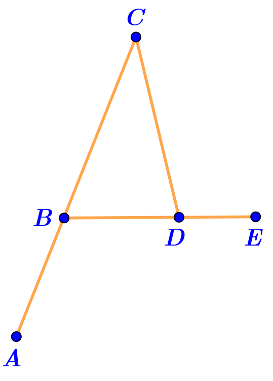 На рисунке изображены точки \(\displaystyle A,\,B,\,C,\,D,\,E{\small .}\) Некоторые из них соединили отрезками.