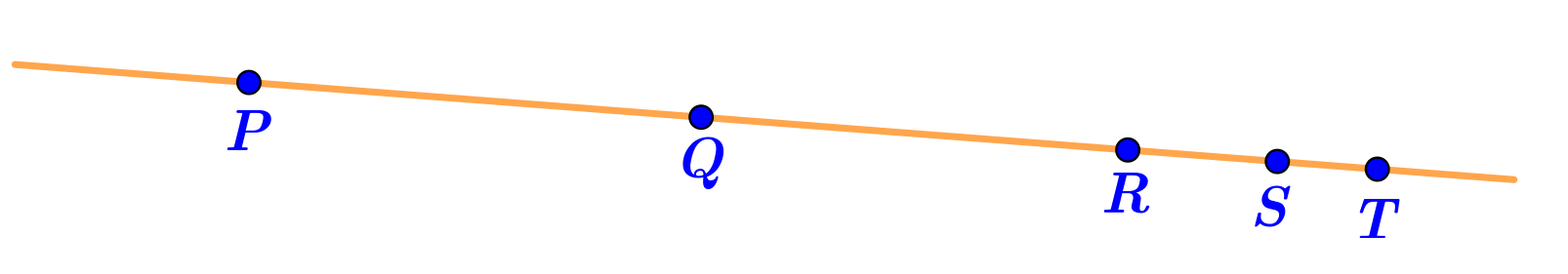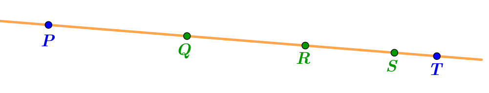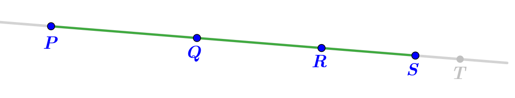 На рисунке отмечены концы отрезка – точки \(\displaystyle S{\small ,}\)\(\displaystyle P\) и внутренние точки \(\displaystyle R{\small ,}\)\(\displaystyle Q{\small .}\)