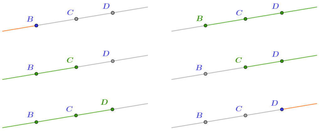 Так, например, обозначения \(\displaystyle BC\) и \(\displaystyle BD\) соответствуют одному и тому же лучу.