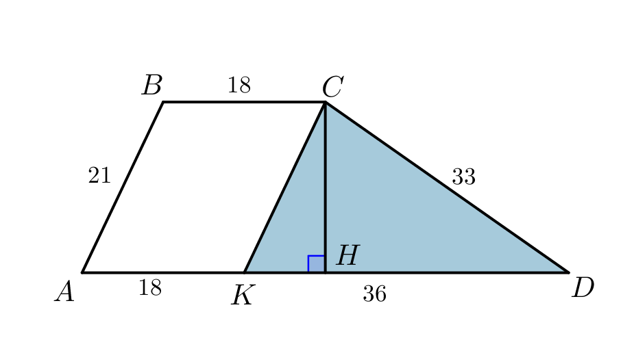 \(\displaystyle CK=21\small,\) \(\displaystyle CD=33\small,\) \(\displaystyle KD=AD-BC=36\small.\)