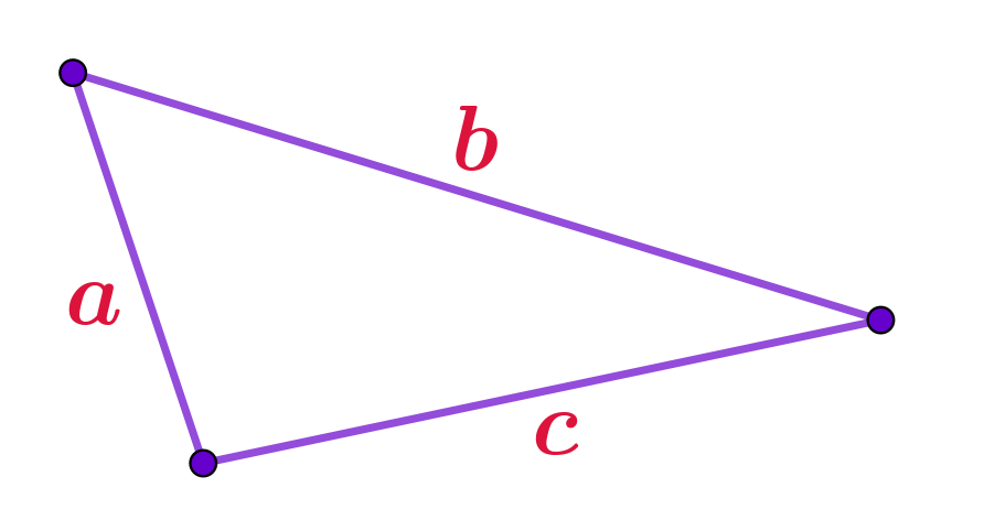 Периметр \(\displaystyle P\) треугольника равен сумме длин его сторон: \(\displaystyle P=\color{#DC143C}a+\color{#DC143C}b+\color{#DC143C}c{\small .}\) |