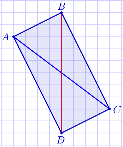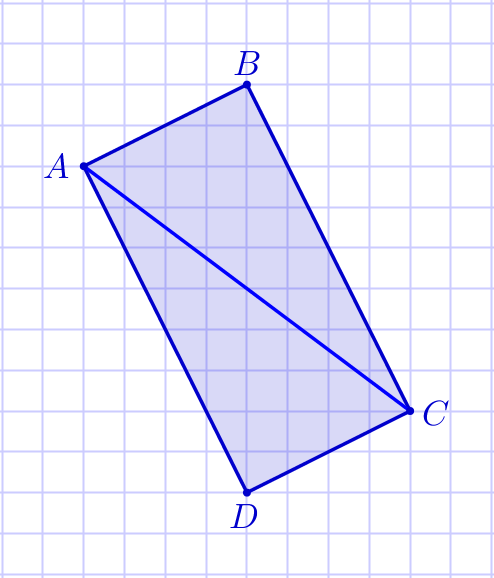 На клетчатой бумаге с размером клетки \(\displaystyle 1{\footnotesize см}×1{\footnotesize см}\) изображён четырёхугольник \(\displaystyle ABCD{\small.}\)