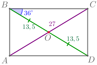 По условию, \(\displaystyle BO=OD=13{,}5\, \footnotesize см{\small,}\) тогда