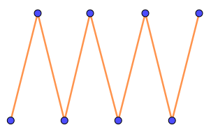 Рассматриваемая ломаная имеет \(\displaystyle k=8\) вершин, а значит, \(\displaystyle n=7\) звеньев.