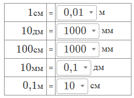\(\displaystyle 0{,}1~{\footnotesize м}=0{,}1\cdot \textcolor{purple}{100}=10~{\footnotesize см}\)