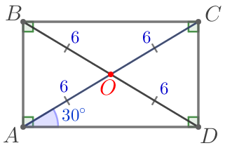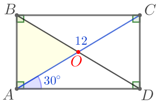 В прямоугольнике \(\displaystyle ABCD\) диагонали пересекаются в точке \(\displaystyle O{\small.}\) Найдите периметр треугольника \(\displaystyle AOB{\small,}\) если \(\displaystyle \angle CAD=30^{\circ}{\small,}\) \(\displaystyle AC=12\, {\footnotesize см}{\small.}\)