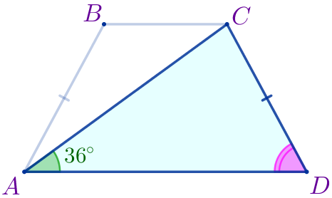 \(\displaystyle \angle BDA=\angle CAD=\color{green}{{36}^{\circ}}{\small.}\)