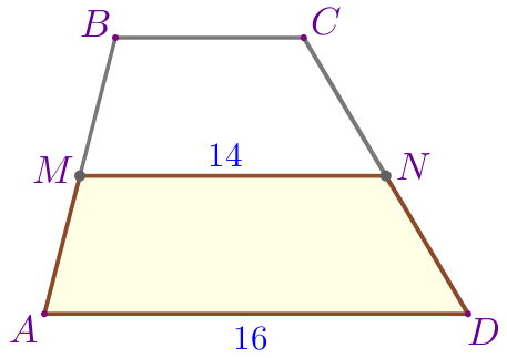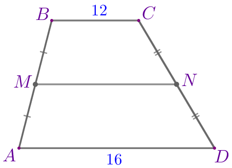 \(\displaystyle MN=\frac{AD+BC}{2}=\frac{16+12}{2}=\frac{28}{2}=14{\small.}\)