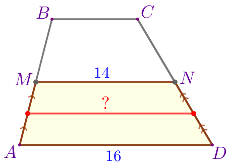 \(\displaystyle \frac{AD+MN}{2}=\frac{16+14}{2}=\frac{30}{2}=15{\small.}\)