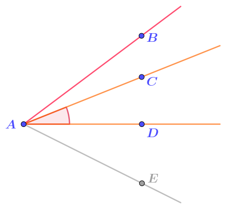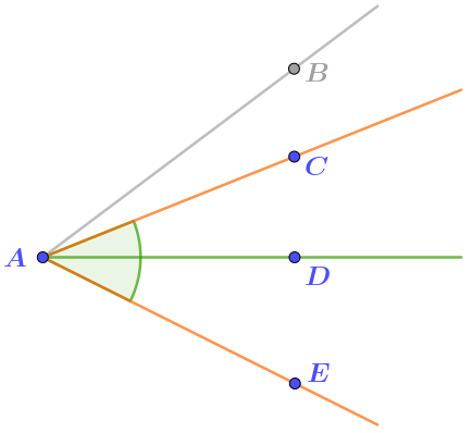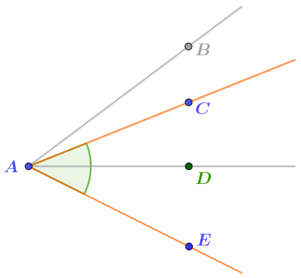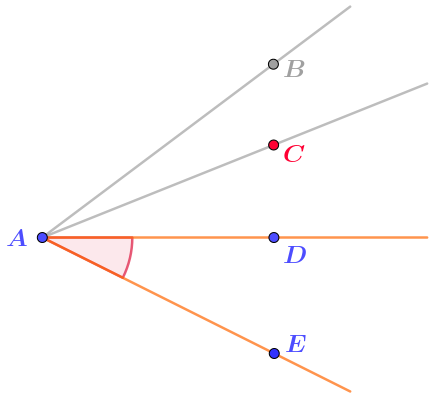 Сторона \(\displaystyle AE\) угла \(\displaystyle DAE\) является также стороной угла \(\displaystyle CAE{\small .}\) А другая его сторона \(\displaystyle AD\) проходит в отмеченной дугой внутренней области угла \(\displaystyle CAE{\small .}\)