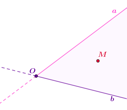 | Точка \(\displaystyle C\) принадлежит внутренней области угла \(\displaystyle DAE{\small .}\) | ![]() | Неверно Отмечаем дугой область, которая по определению является внутренней областью угла \(\displaystyle DAE{\small .}\) Убеждаемся, что точка \(\displaystyle C\) не принадлежит этой области. |