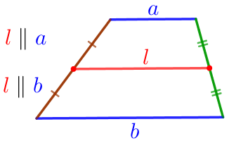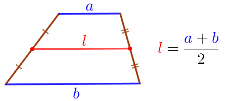 Средняя линия трапеции параллельна её основаниям и равна половине их суммы. | ![]() |