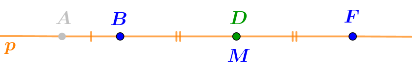 Далее используем тот факт, что точка \(\displaystyle D\)– середина отрезка \(\displaystyle BF{\small .} \) Тогда длины \(\displaystyle BD \) и \(\displaystyle DF \) равны.