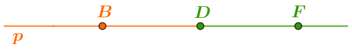 Отмечая на прямой все найденные точки и области, получаем луч \(\displaystyle DF{\small :}\)