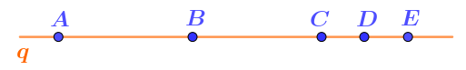 На прямой \(\displaystyle q\) отмечены пять точек.