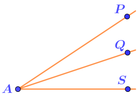 На рисунке три луча \(\displaystyle AP{\small ,\;}AQ\) и \(\displaystyle AS\) с общим началом.
