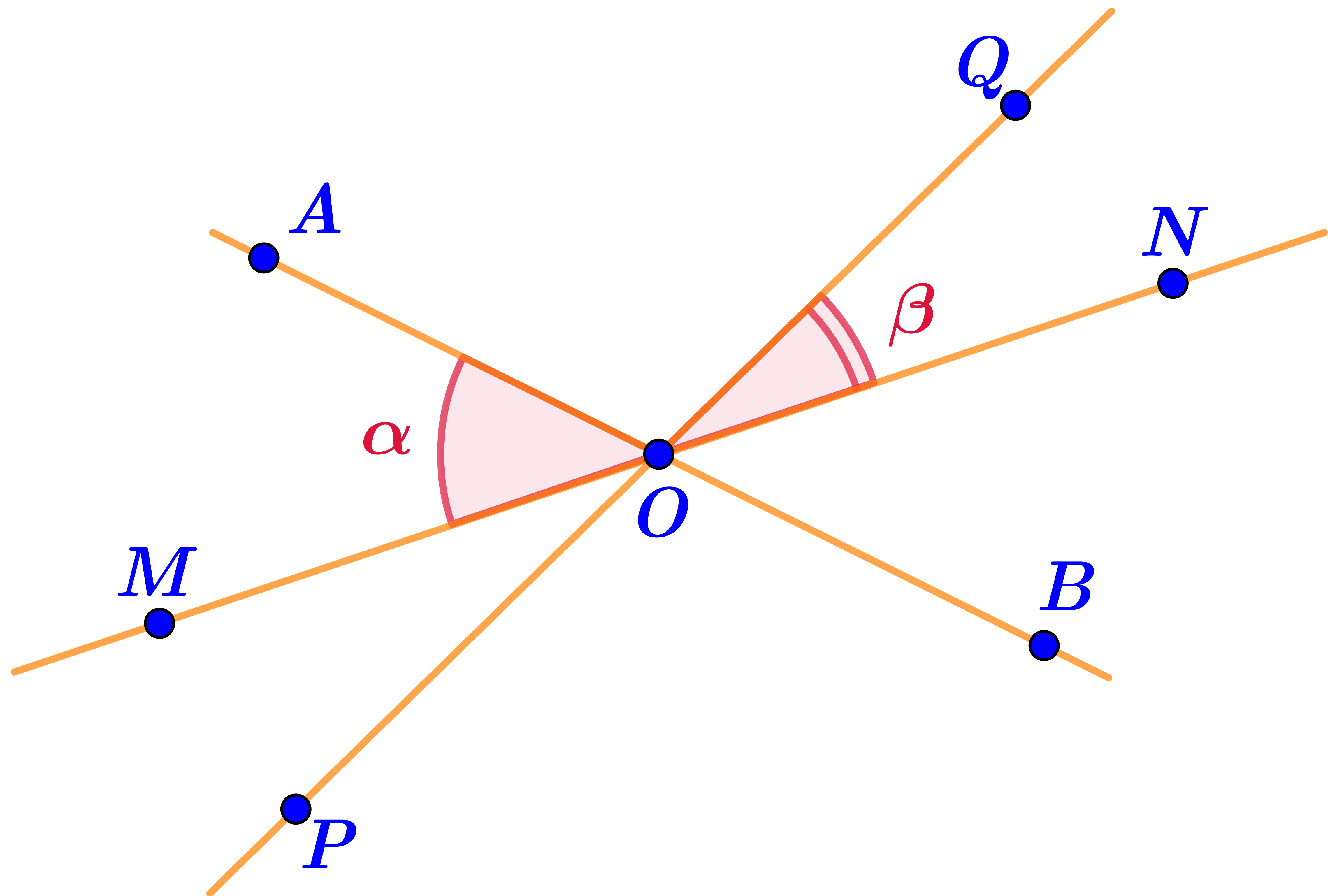 Значит, углы \(\displaystyle MOP\) и \(\displaystyle NOQ\) вертикальные и равны между собой: