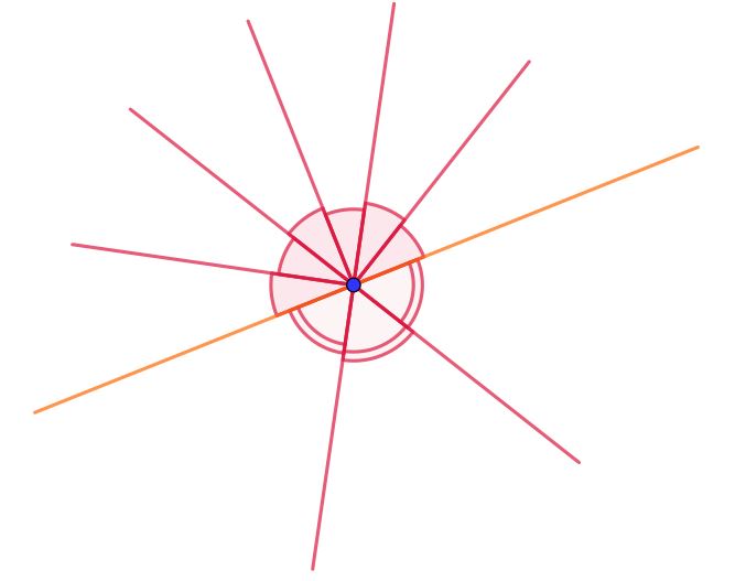 Если два из этих семи лучей образуют прямую, то они должны проходить по разные стороны исходной прямой.