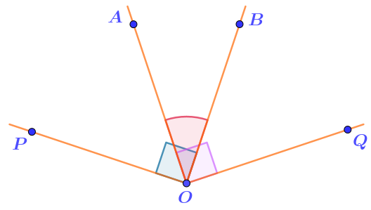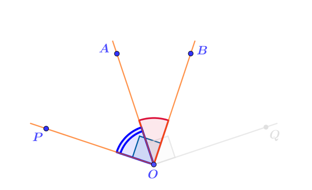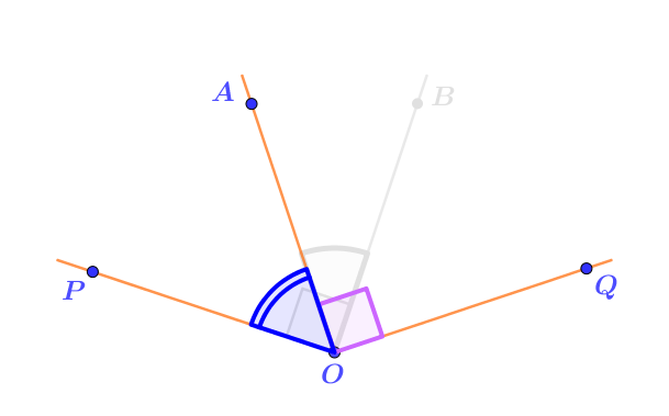 Отложим прямой угол \(\displaystyle AOQ\) от луча \(\displaystyle OA\) в ту же сторону, куда отложен угол \(\displaystyle AOB{\small .}\) Исходный угол станет частью прямого.