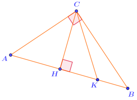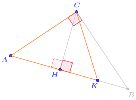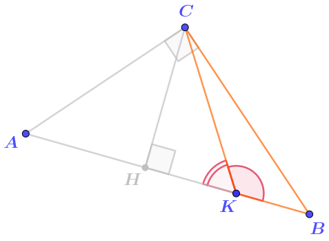 На стороне \(\displaystyle AB\) прямоугольного треугольника \(\displaystyle ABC\) отмечены точки \(\displaystyle H\) и \(\displaystyle K{\small .}\)