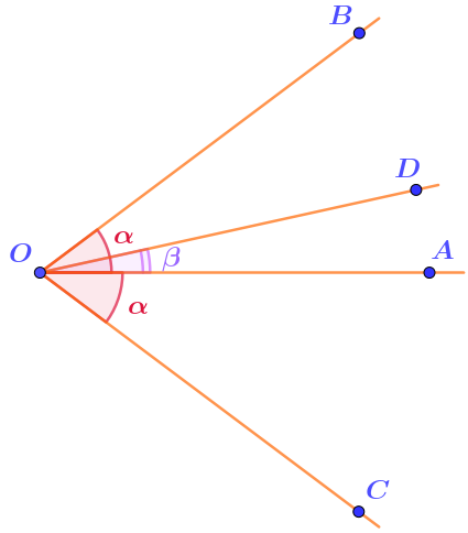 С другой стороны, этот же угол получен двукратным откладыванием от луча \(\displaystyle OA\) угла величиной \(\displaystyle \alpha{\small .}\)