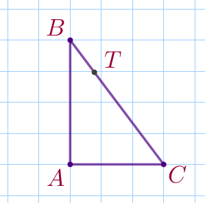 На гипотенузе \(\displaystyle BC\) отмечена точка \(\displaystyle T{\small.}\)