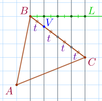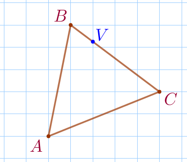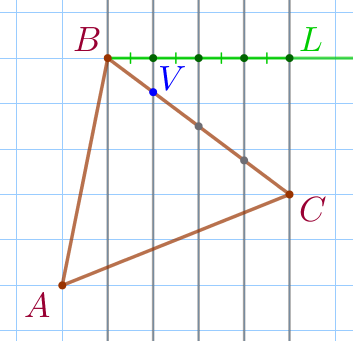 Заметим, что точка \(\displaystyle V\) лежит на пересечении стороны \(\displaystyle BC\) и вертикальной линии сетки.