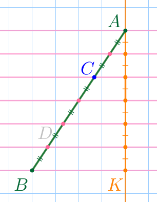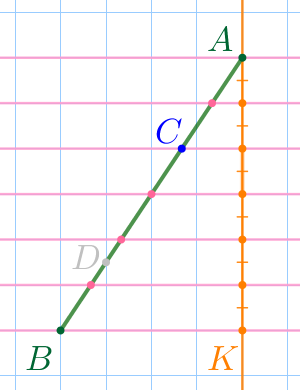 Заметим, что точка \(\displaystyle C\) лежит на пересечении отрезка \(\displaystyle AB\) и горизонтальной линии сетки.