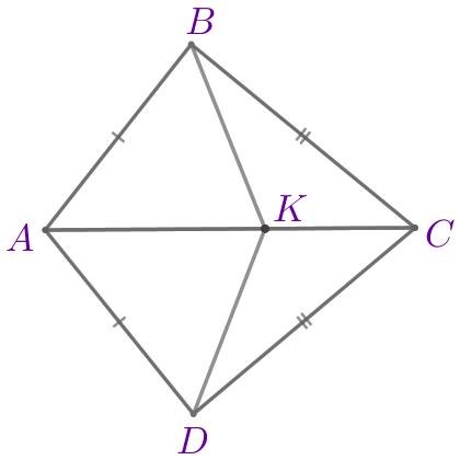 - точка \(\displaystyle K\) лежит на диагонали \(\displaystyle AC{\small;}\)
